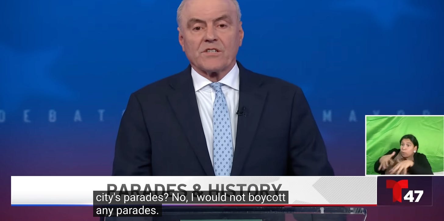 And that’s fine. There isn’t much I like about Sliwa or his politics, and I think he’s the most John Slattery on 30 Rock telling Alec Baldwin to “Say ‘Goo-goo, ga-ga’ Jack” candidate the city has had in a minute, but that doesn’t mean I won’t miss him when this election is over. In fact, I find his brand of entertaining hilarious and also endearing in a way that’s certainly outdated, but also maybe going extinct right before our eyes. Once the election is over, I don’t know how much of Sliwa’s kind we’ll see getting a bright spotlight. For better or worse? You decide.